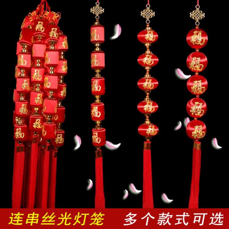新年小灯笼丝光连串小红灯笼批发春节室内装饰挂件挂饰户外过年