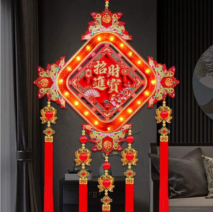 发光款福字挂饰新年挂件春节客厅入户门中国结乔迁新居布置七彩灯