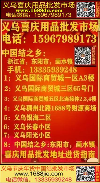 核心提示:义乌喜庆用品批发市场 手机15967989173